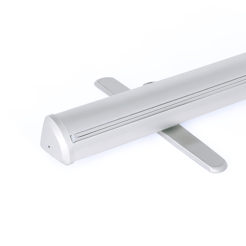 wird das bedruckte Roll Up von einer Teleskopstange getragen, die das Aufstellen deutlich vereinfacht. Die elegante, formschöne Kassette aus stärkerem Aluminium hinterlässt einen hochwertige Eindruck im Raum.