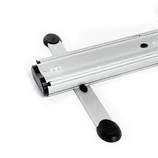 wie bei der Discount Variante und enthält ebenso ausklappbare Füße (mit Schutzkappen bei einer Breite bis 100 cm). Ab einer Breite von 120 cm wird das Roll Up von zwei Stützstangen getragen.