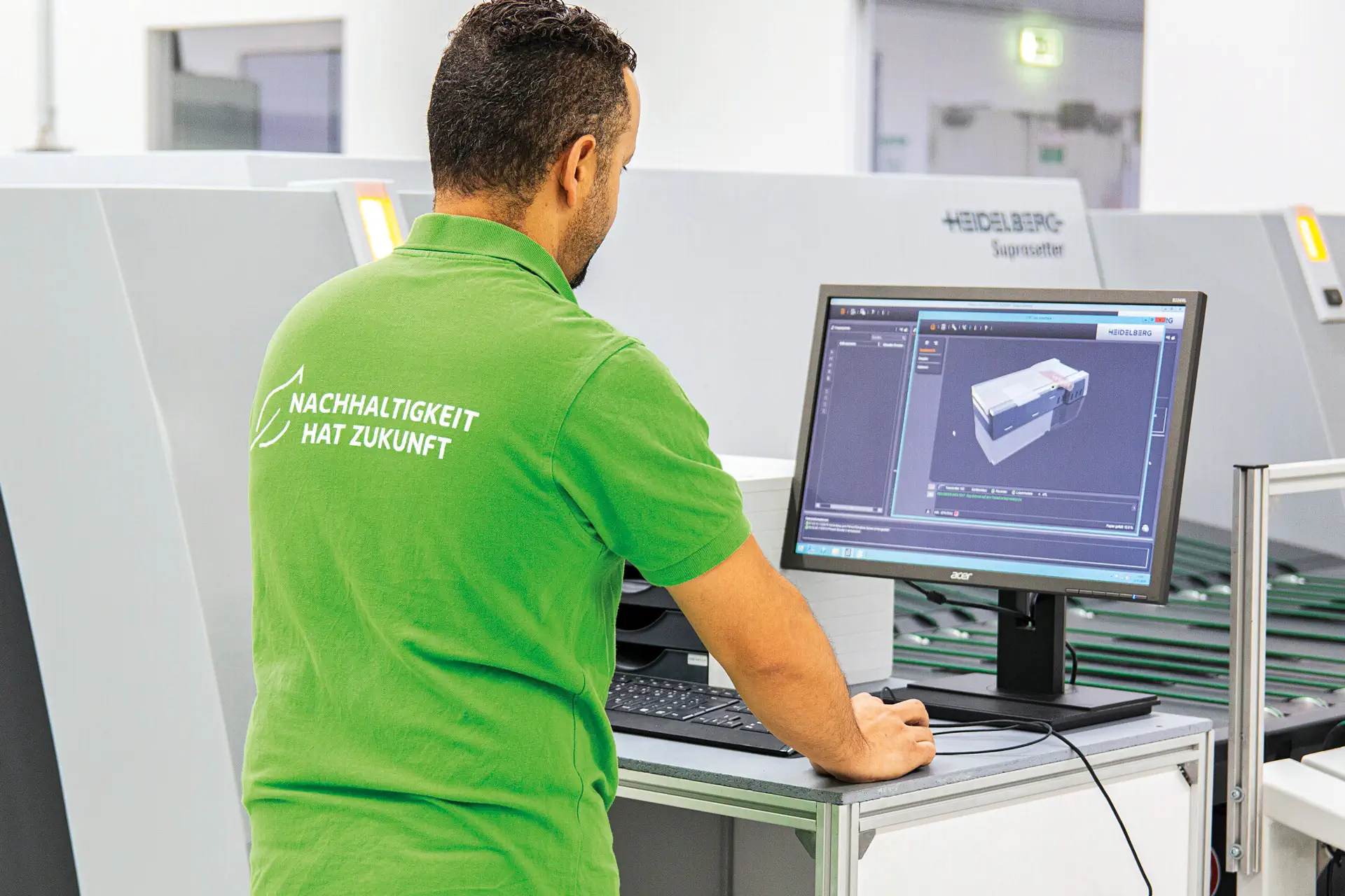 Zum Einsatz kommt dabei unter anderem der Heidelberg Suprasetter 145/162/190, ein Großformatbelichter mit patentiertem Lasersystem für höchste Präzision und Zuverlässigkeit. Wir sind vom Druckplattenvolumen (1,2 Mio. m²) mit Abstand der größte Kunde mit der neuen prozessfreien Platte weltweit und absoluter Vorreiter. Darauf können wir stolz sein und haben dem Markt gezeigt, wie nachhaltiges Drucken im Bereich Plattenbelichtung heute geht.
