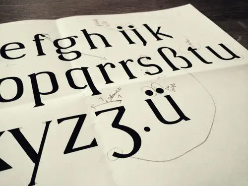Ich versuche aber immer neue Werkzeuge oder Techniken zu entdecken, damit mein Kopf trainiert bleibt. Für meine Bachelorarbeit habe ich viel collagiert: ausgedruckt, ausgeschnitten, aufgeklebt und abfotografiert. Das hat eine Menge Spaß gemacht. Grade sitze ich auch an einer Schrift, wo ich anfangs natürlich sehr viel mit Lineal und Bleistift gearbeitet habe und Butterbrotpapier.