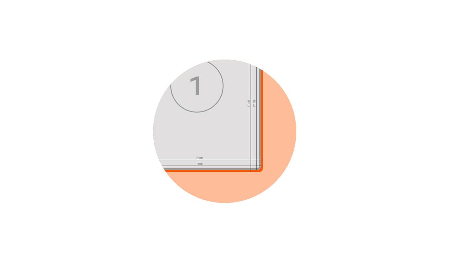 Um einen randlosen Druck zu ermöglichen, benötigen wir Randanschnitt an Ihren Druckdaten. Dies ist ein farbiger Bereich um das Druckbild in dem der Zuschnitt erfolgt. Ohne Randanschnitt kann es beim Beschneiden zu weißen Linien im Randbereich kommen, sogenannte Blitzer.